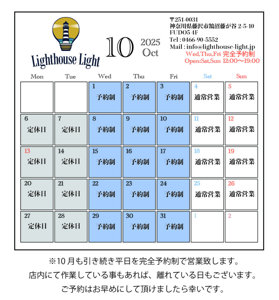 10月も平日の営業を完全予約制で営業していきます。(そろそろHPなどの営業時間も書き換えるかもしれません。)